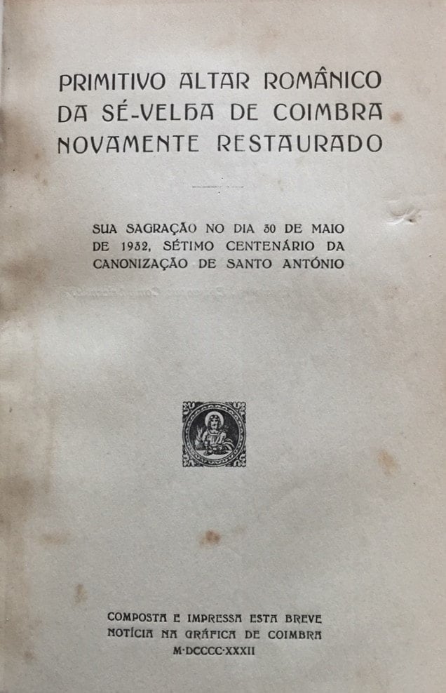 Ilustrado com desenhos a preto e branco e uma «Planta da ábside da Sé-Velha – situação do altar-mór». Exemplar em bom estado.